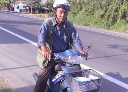 Anh Trần Trinh Đức – con trai Công tử Bạc Liêu bên chiếc xe máy cũ kỹ.