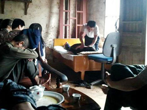 Cũng tại đây, tôi gặp bà Nguyễn Thị Đ. (72 tuổi), ở xã Tân Dĩnh (Lạng Giang). Hôm nay là ngày cuối cùng trong "phác đồ" 16 ngày điều trị bệnh của bà. Trước đó, tháng 10-2012, do tuổi cao lại làm việc nặng nên bà Đ. bị đau lưng. Nghe một số người giới thiệu, bà liền tìm đến nhờ "thần y" chữa trị song khi mới hoàn thành 80% thời gian thì phải tạm dừng do "thần y" bận… nghỉ Tết.