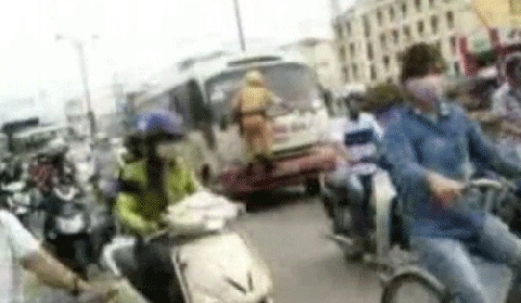 CSGT đu cần gạt nước gần trăm mét chặn xe khách