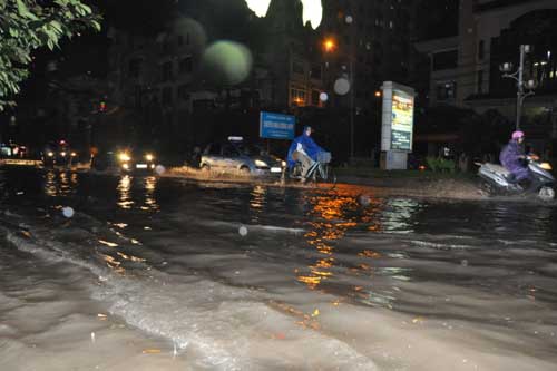Đường phố Hà Nội thành sông sau cơn mưa đầu mùa