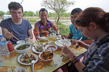 Bạn chắc chắn sẽ phải ngưỡng mộ khả năng của người Việt khi biến những phần không mấy ngon miệng của động vật thành các món đặc sản. Những chiếc đĩa sạch trơn. Không lăng phí một tẹo nào. Nửa giờ sau, chúng tôi lên xe đạp tiếp tục hành tŕnh: Tôi, con trai Niall 16 tuổi, Maddy và Cường.