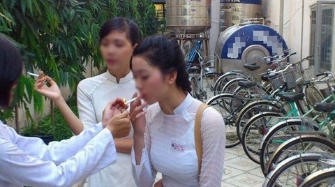 3 nữ sinh áo dài trắng thướt tha phì phèo thuốc lá một cách "sành điệu"; một nữ sinh khách ngồi vắt vẻo giữa phố hút sòng sọc một lúc vài điều thuốc lào... Những hình ảnh phản cảm đó đều nhận được phản ứng không tốt của dư luận...