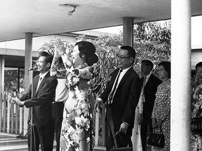 Bà Nguyễn Thị Mai Anh - phu nhân tổng thống Thiệu tại Bệnh viện Vì Dân.