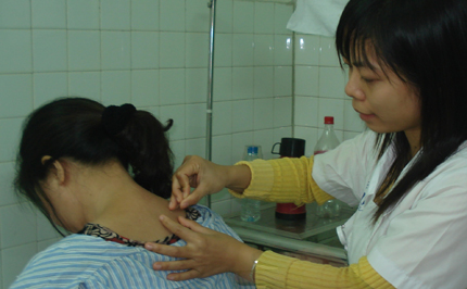 Châm cứu trị chứng đau đầu rất hiệu quả, đang được nhiều người áp dụng. Ảnh: Hà Dương