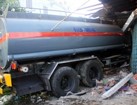 Xe bồn húc sập nhà dân, hai mẹ con nguy kịch