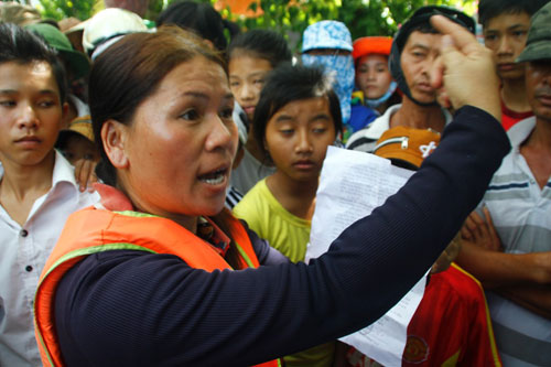 Trước bức xúc của người dân, trong buổi sáng ra quân, 3 sà làn của đơn vị thi công chỉ làm việc trong khoảng gần 2 giờ đồng hồ do một số người dân đã dùng thuyền nhỏ tiến gần sà lan, sau đó họ đã trèo lên khoang để ngăn cản.