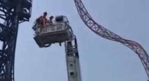 Tàu lượn siêu tốc đột ngột hỏng, 11 du khách bị treo lơ lửng