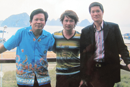 NSƯT Bằng Thái (trái) và Bằng Kiều trong chuyến về nước lần đầu tiên năm 2008. (Ảnh do NSƯT Bằng Thái cung cấp)