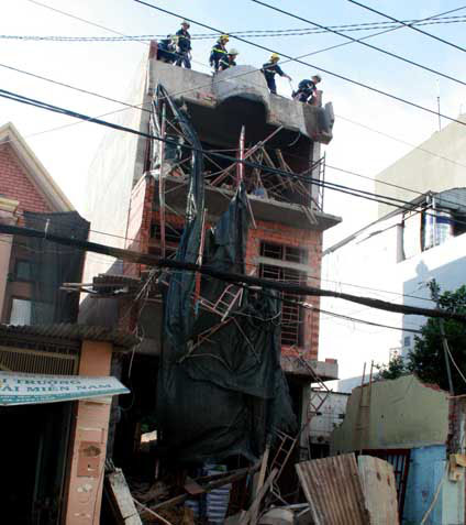 Nhà đang xây sập mái vòm, nhiều người hoảng loạn