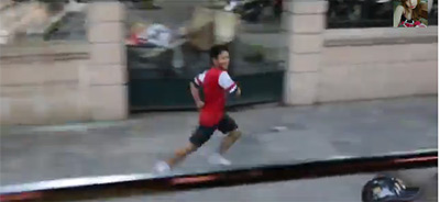 Vũ Xuân Tiên chạy theo xe buýt của đội Arsenal hàng chục dặm qua đường phố Hà Nội để cỗ vũ các cầu thủ mình hâm mộ (Hình: Website của Arsenal)