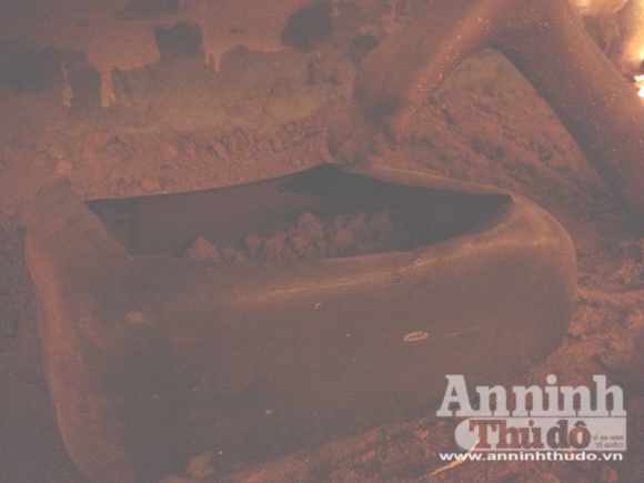 Đất được cho vào một can nhựa, bí mật đưa ra ngoài đổ để tránh bị phát hiện.