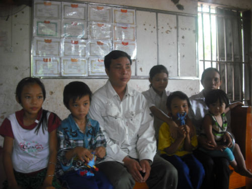 Anh Hậu cùng vợ con trong ngôi nhà tồi tàn của mình.
