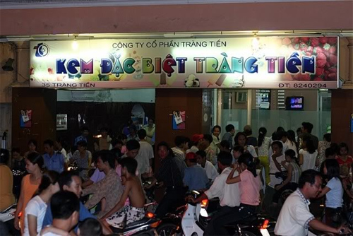 Nằm trong danh sách những món không thể không ăn khi đến Hà Nội, kem Tràng Tiền là thương hiệu nổi tiếng đã có mặt hơn nửa thế kỷ qua. Kem Tràng Tiền giờ xuất hiện ở hầu hết mọi đường phố, ngõ xóm tại các quầy bán kem nhỏ lẻ, nhưng với dân Hà Thành, muốn thưởng thức kem Tràng Tiền chuẩn và “đúng điệu” thì nhất định phải ghé phố Tràng Tiền.