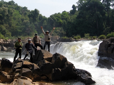 Chúng tôi đi xuồng ngược sông Đồng Nai. Gió lồng lộng mát rượi, những tia nắng mặt trời xuyên qua tán cây rậm rạp rừng nguyên sinh chiếu rọi xuống ḍng nước trong xanh tạo thành những vệt sáng lấp lóa. Thảng hoặc những nhành phong lan mềm mại buông rủ qua những kẽ đá, hốc cây cổ thụ rêu phong đẹp như tranh.