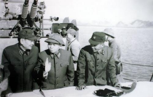 Đại tướng Võ Nguyên Giáp (giữa) trên một con tàu hải quân tháng 3/1973. Ảnh tư liệu