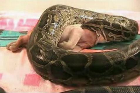 Thấy con trăn, tôi định về gọi thêm người để bắt, nhưng nó trườn đi nên tôi liều mình lao vào, nó dài gần 5m. Con trăn vùng vẫy, kéo tôi đi. “Cuộc chiến” với con trăn kéo dài 3 tiếng đồng hồ, dù đói và rét nhưng tôi vẫn cố gắng không để con trăn trườn mất. Lúc đó rất mệt nhưng tôi cố gắng dồn nó về hướng nhà mình rồi gọi vợ ra giúp. Trời càng lúc càng mưa to, tôi gọi nhưng không ai nghe thấy, tôi vớ được khúc gỗ to, ném vào. Khi con trăn quấn chặt khúc gỗ, tôi mới có thể đem về. Sau đó, anh Hà Văn Huy, SN 1976, cũng đi soi ếch về ngang qua nên giúp tôi cho vào bao tải”, anh Thường kể lại.