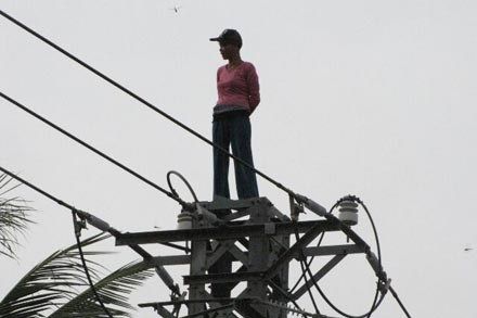 Giải cứu một phụ nữ trèo lên đỉnh cột điện cao thế