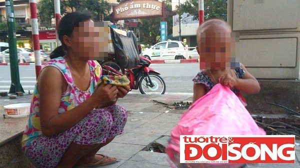 Ban ngày, có lúc mẹ con Tươi ngồi ở đây, có lúc Tươi cho cái Tý vào thùng xốp, trong thùng xốp có cả quần áo của hai mẹ con, cứ thế Tươi đạp xe đi khắp các ngõ ngách phố xá.