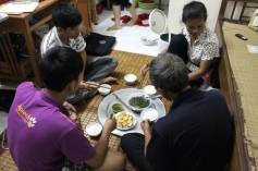 Mâm cơm chỉ có bát canh rau và đĩa đậu phụ rán nhưng ai nấy đều ăn ngon lành. Vài ngày trước cả nhà đã chuyển về sống ở phòng trọ này, nhờ sự giúp đỡ của chủ nhà trọ. Sau khi về huyện Ứng Hòa dự lễ tuyên dương thủ khoa, chiều 30/8 Tiến và mẹ lên Hà Nội, tiện thể “khuân” thêm ít rau, lương thực ở nhà.