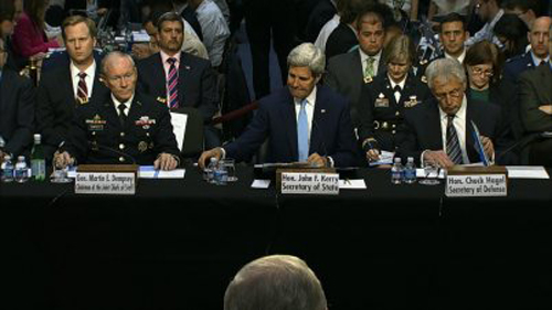 Giới chức chóp bu trong chính quyền Tổng thống Obama tại phiên điều trần ngày 3/9 tại Ủy ban đối ngoại Thượng viện. Ảnh: Washingtonpost