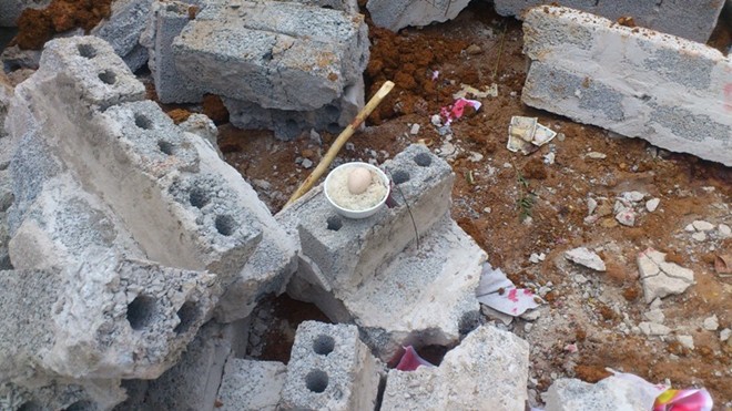 Hiện trường nơi bức tường đổ sập xuống đè chết 4 cháu nhỏ.