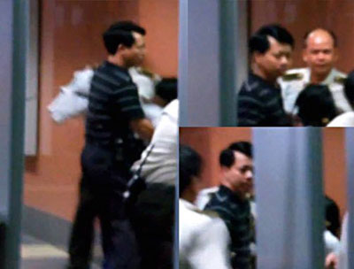 Cô Nguyễn Phương Uyên bị Công an thường phục CSVN lôi kéo, bắt giữ, hành hung, và tên Công an mặc áo đen sọc trắng (trong hình) làm nhục. (Hình: Facebook Nguyễn Tường Thụy) |