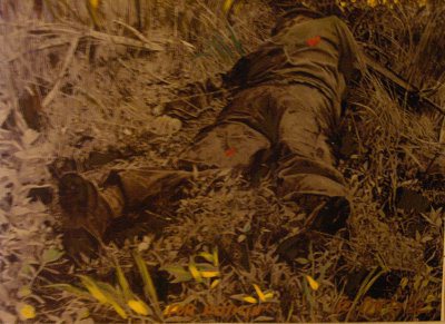 Thấy tôi cương quyết, đám lính trẻ nghe theo. Tôi quay lại phía hàng trăm người bị giết và bị thương. Họ chồng đống lên nhau máu me đầm đìa, máu chảy thành suối. Một cụ già bị bắn nát bàn tay đang vật vã kêu lên đau đớn. Tôi vực cụ vào bóng mát rồi dật cuốn băng cá nhân duy nhất bên mình băng tạm cho cụ. Lát sau tôi quay lại thì cụ đã tắt thở vì máu ra quá nhiều. Một chỗ thấy 5 người con gái và 5 người con trai bị bắn chết châu đầu vào nhau. Tôi hỏi người lính trẻ đi theo bên cạnh: