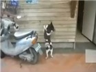 Ăn vụng đồ ăn, bị phạt đứng úp mặt vào tường, chú chó vẫn lân la ngó trộm chủ.