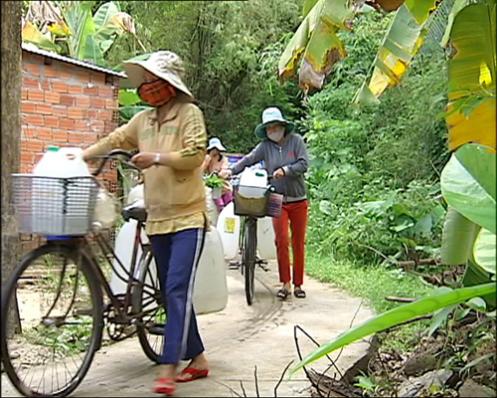 Người dân chở nước lấy từ giếng làng về dùng cho sinh hoạt hàng ngày.