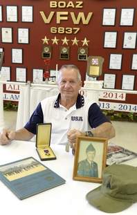 Cựu chiến binh Việt Nam và Dennis Lindsay được nhìn thấy hôm thứ năm tại VFW bài viết 6837 trong Boaz.
