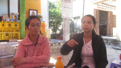 Chị Nguyễn Thị Diễm (bên phải), con gái nạn nhân, cũng cho rằng cái chết của bố chị có vấn đề. (Hình: Người Lao Động)