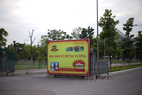 Ghi nhận của PetroTimes cho thấy, ngay tại cổng số 3 của Trung tâm Hội nghị Quốc gia xuất hiện quán bia lớn nằm trong khuôn viên. Để tạo sự chú ý của thực khách, nhà hàng này trưng tới 3 tấm biển lớn, một pano dài khoảng 8m gắn ngay hàng rào sắt cạnh cổng ra vào.