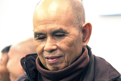 Thiền sư Thích Nhất Hạnh, năm 2013 trong chuyến đi giảng dạy tại California. (Hình: Triết Trần/Người Việt)