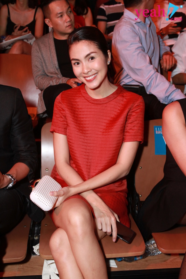 Hà Tăng chọn chiếc đầm đỏ đơn giản tham dự buổi Elle Fashion show 2015 tối nay 14/11/2014 tại GEM Center.