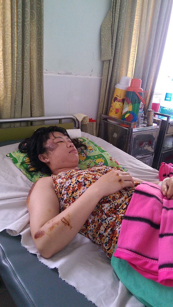 Những vết thương trên cơ thể chị Trân vẫn chưa lành hẳn,