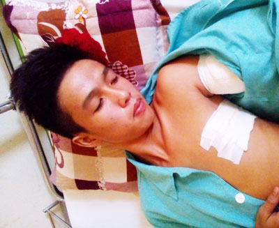 Trao đổi với các bác sĩ điều trị, chúng tôi được biết Thi có một vết thương sâu ở sườn trái, một vết thương ở mặt sau cánh tay trái, bị tràn khí màng phổi trái. Hiếu bị đứt gân lòng bàn tay, phía sau lưng trái có một vết thương.