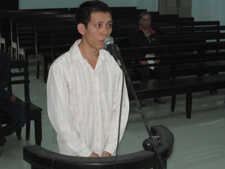 Bị cáo Phan Tiến Dũng trước vành móng ngựa và bị hại Nguyễn Thị Nở (ngồi phía sau) tại tòa.