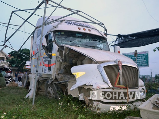 Vụ tai nạn cũng đã khiến chiếc xe đầu kéo bị hư hỏng nặng, vỡ nát phần đầu. Riêng tài xế xe đầu kéo chỉ bị thương nhẹ.