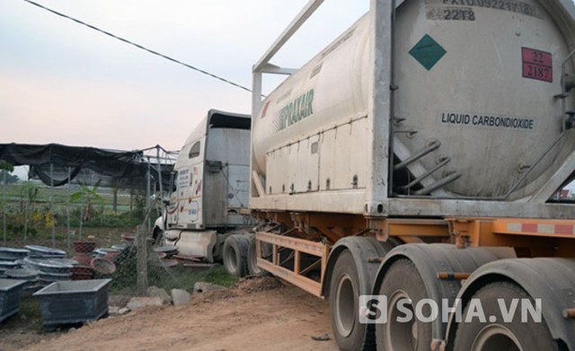 Sau khi va chạm với xe tải, chiếc xe đầu kéo tiếp tục chạy về phía trước và lao vào khu vườn trồng hoa của 1 người dân gần đó.