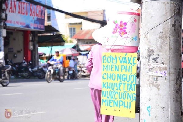 Chỉ tay vào góc đường, nơi có bình nước miễn phí, anh Hùng cho biết, hằng ngày có rất nhiều người nghèo khổ đi qua đây uống nước. Mỗi ly nước chỉ vỏn vẹn 2.000 đồng nhưng với những người lao động nghèo khổ đó lại là số tiền không hề nhỏ bởi họ phải cố chắt chiu từng đồng bạc lẻ để lo cho gia đình.