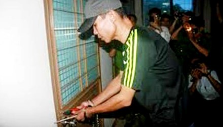 Vũ Mạnh Hùng đang thực nghiệm lại hành vi đột nhập công sở trộm cắp.