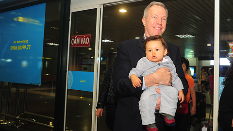 Ông Ted Osius đi cùng bạn đời Clayton Bond, con trai Theodore Alan Bond-Osius (Tabo) và mẹ, bà Nancy Zimmerman đến Hà Nội tối qua để bắt đầu nhiệm kỳ Đại sứ tại VN.