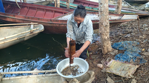 Trường chậm rãi dọn dẹp lưới, vây và các đồ dùng lỉnh kỉnh trên xuồng. Với vẻ mặt mệt mỏi, ủ rũ, Trường tiết lộ về công việc: "Mấy hôm nay làm ăn kém quá anh ạ. Lượng tôm thu được ít hơn so với mấy ngày trước. Chẳng hiểu làm sao!".