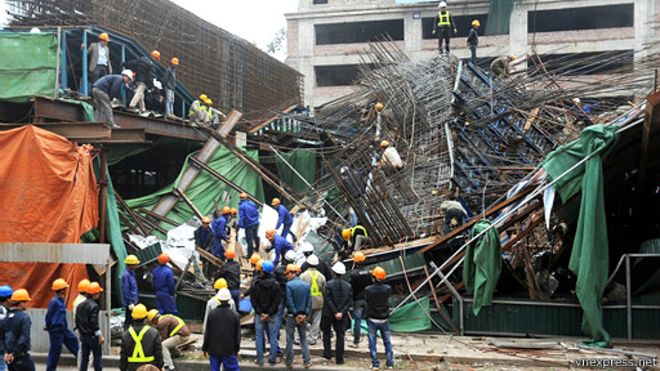 "Thứ trưởng Nguyễn Hồng Trường cho biết, nguyên nhân ban đầu dẫn tới vụ việc có thể do giàn giáo bị dịch chuyển, khi đổ bê tông, giàn giáo mất khả năng chịu lực dẫn đến sập hệ thống sàn, đà giáo và sụt bê tông".