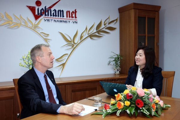 Đại sứ Ted Osius: Cảm ơn VietNamNet. Tôi rất vinh dự được tham gia bàn tròn trực tuyến này. Tôi sẽ cố gắng trả lời bằng tiếng Việt. Nếu khó, tôi sẽ hỏi một bạn có thể giúp tôi nhưng sẽ cố gắng luôn nói chuyện bằng tiếng Việt. Cảm ơn rất nhiều!