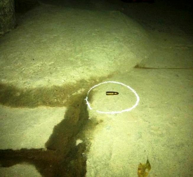 Cảnh sát tìm thấy một vỏ đạn (khoanh tròn) nằm dưới nền sân quán hát.