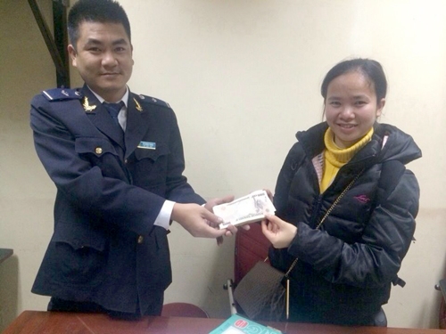 Giữ bọc tiền, anh Trung báo cáo cấp trên để phát loa thông báo tìm chủ nhân bọc tiền trên. Khoảng 15 phút sau, chị Trần Thị Thanh Nga (30 tuổi, ở Hưng Yên) đến nhận là chủ nhân bọc tiền trên. Theo chị Nga, trong bọc có 1,269 triệu Yên (tương đương 230 triệu đồng Việt Nam).