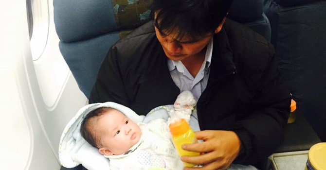 Riêng hai bố con anh P. đã đợi tới 15 tiếng cho một chuyến bay.