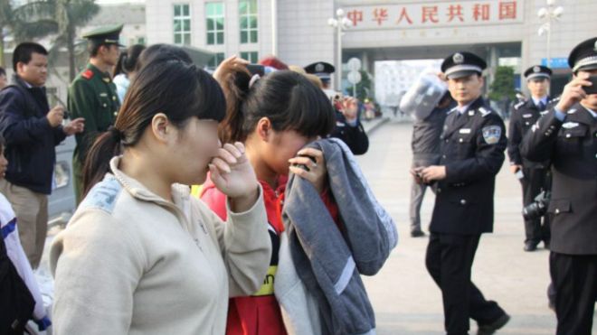 Cảnh sát Trung Quốc trao trả “bảy cô dâu Việt Nam” cho phía Việt Nam, những người được cho là bị bán sang Trung Quốc.