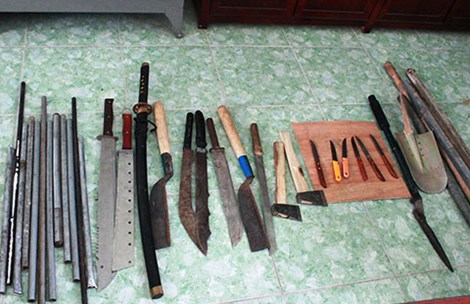Đến đêm 24-1, lực lượng trinh sát đã bắt giữ Đức “đại bàng” cùng 24 đàn em của Đức, thu giữ nhiều hung khí dùng gây án.